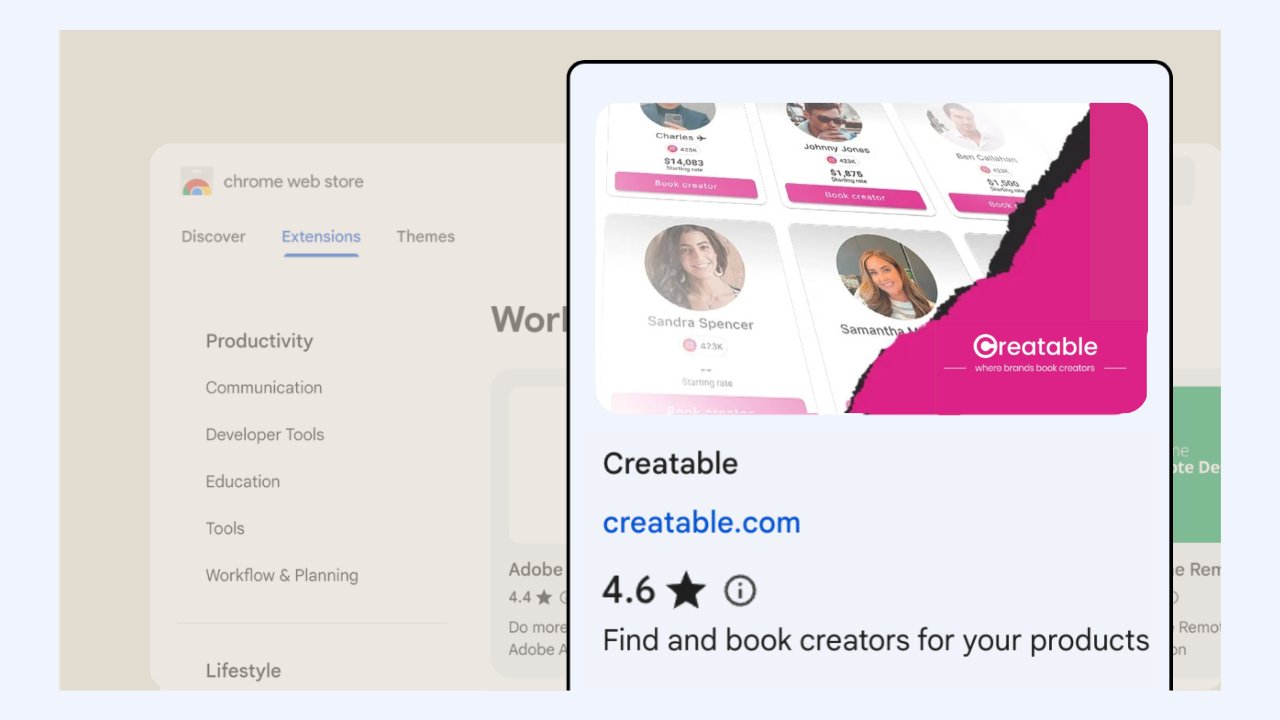 Get the Creatable Chrome Extension. The Easiest Way to Find Creators.